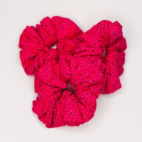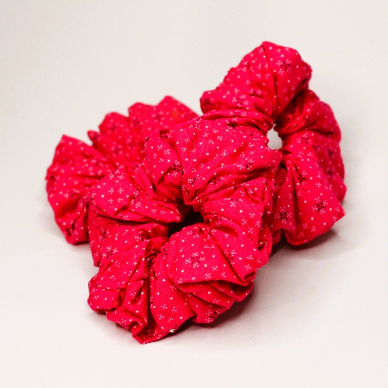 Voeg een speelse twist toe aan je kapsel met deze retro dottie scrunchie in de kleur roze, bedrukt met een vrolijk stippenpatroon geïnspireerd op de vijf van een dominosteen. Perfect voor een subtiele retro vibe of om een basic outfit net dat extra accent te geven. Deze zachte stoffen scrunchie is ideaal voor een lage knot, messy bun of als kleurrijke polsaccessoire. Ontdek unieke handgemaakte scrunchies van katoen die comfort en stijl combineren.