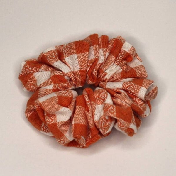 Orange grid small scrunchie