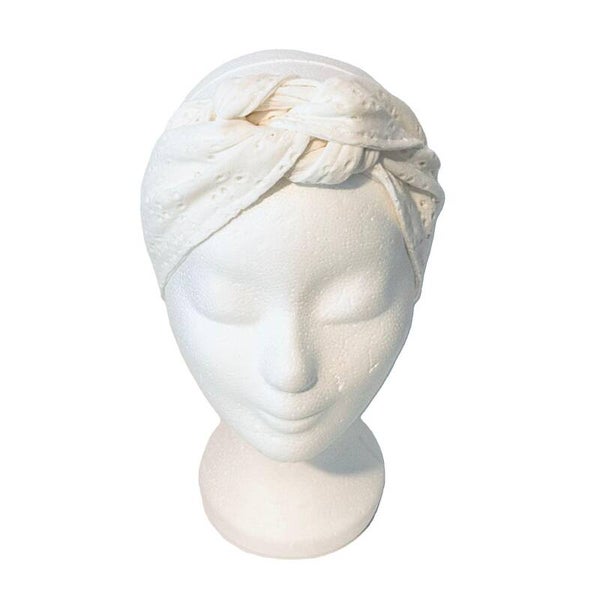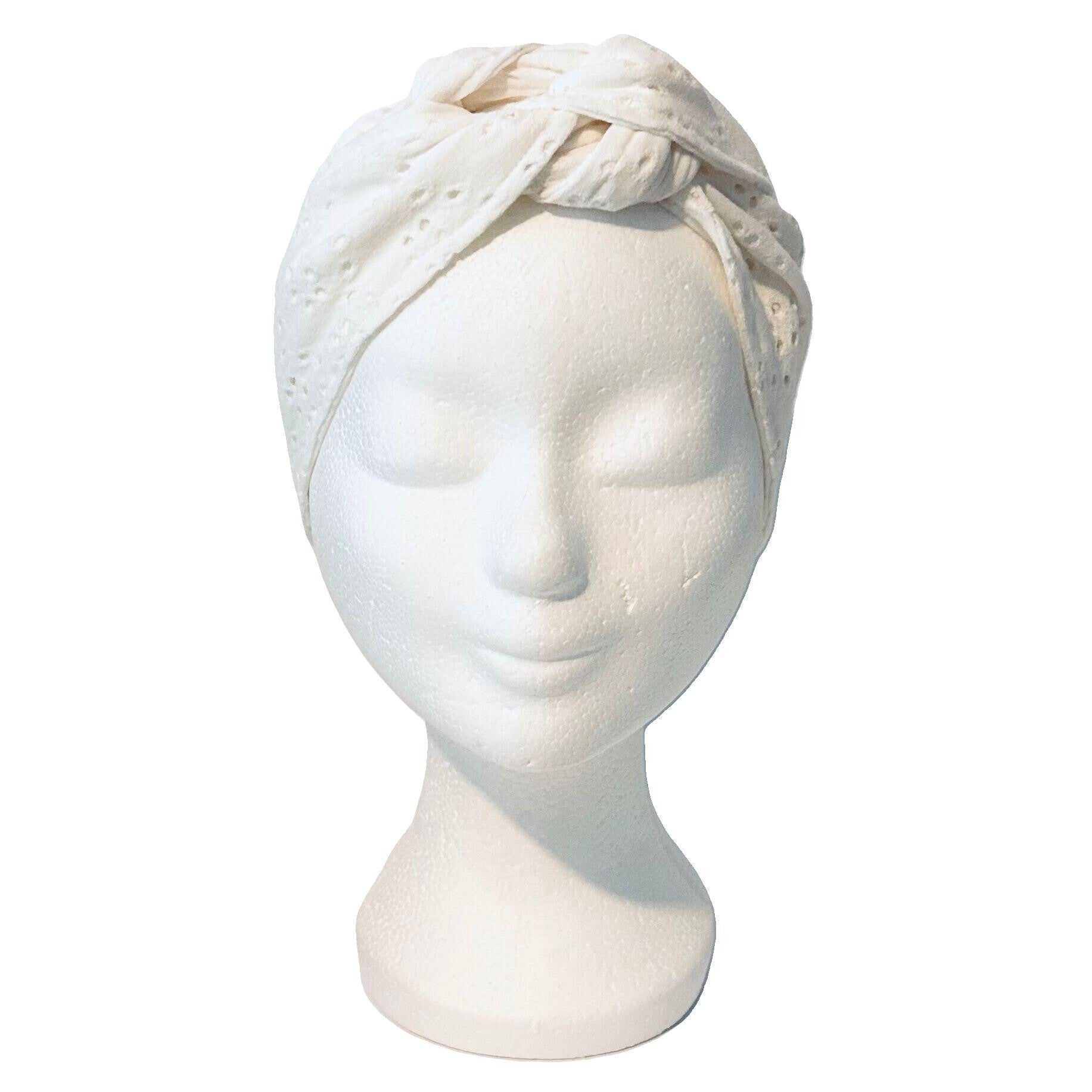 Dankzij het vintage knoopdesign en de zachte katoenen stof is deze witte rosie wrap haarband met opengewerkte embroidery ideaal voor zonnige dagen, festivals en bruiloften. De haarband is 7 cm breed en 95 cm lang, geschikt voor volwassenen, en blijft de hele dag mooi zitten.