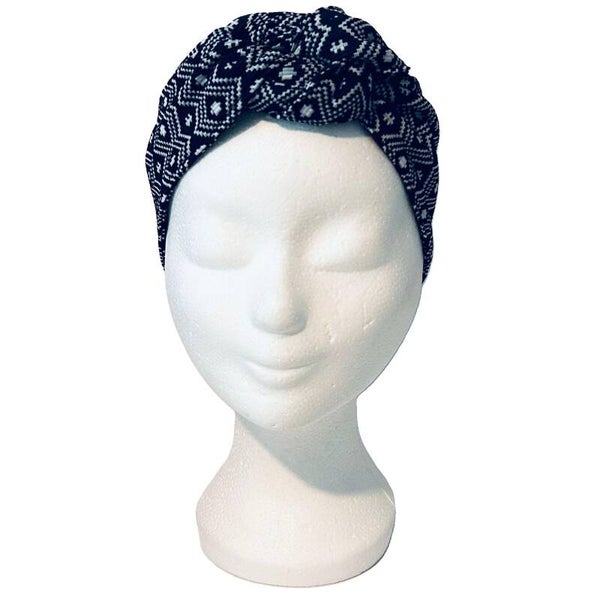Maak een stijlvol statement met de Rosie Wrap haarband - Pixelated Edge. Deze handgemaakte haarband van 100% katoen heeft een modern, hoekig zwart-wit weefpatroon dat pixelated oogt en zorgt voor een unieke, grafische look. De stof bevat een klein beetje stretch voor comfort en een perfecte pasvorm.