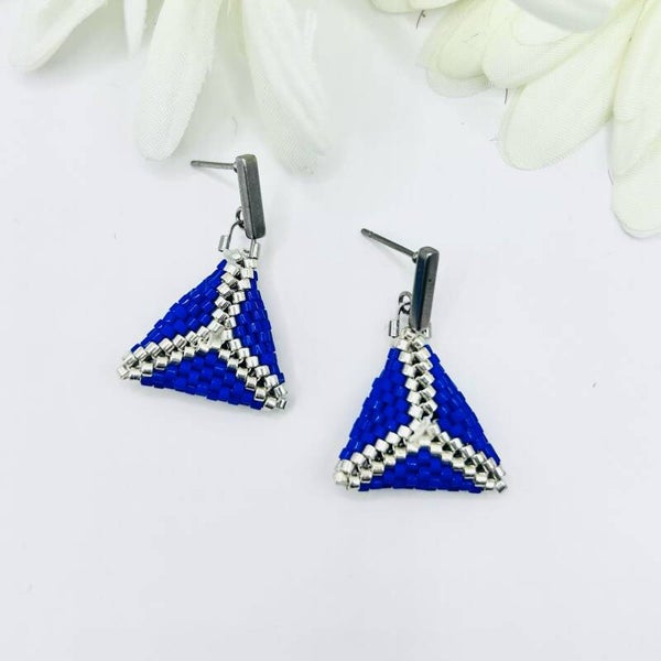 De Caleido azure beaded oorbellenzijn de perfecte combinatie van geometrie en verfijnde elegantie. Handgemaakt van Miyuki Delica kralen in een royal blauwe tint, en een zilver RVS stud, bieden deze oorbellen een frisse en tijdloze uitstraling. Met hun geometrische driehoekige vorm en het elegante ontwerp, zijn de Caleido azure beaded oorbellen een ideale keuze voor elke vrouw die op zoek is naar unieke en stijlvolle accessoires.