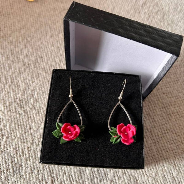 Laat je oren bloeien met deze elegante Blush petal bloemen oorbellen. In de zilverkleurige stainless steel druppelvorm hangt een met de hand geboetseerde bloem van polymer clay, afgewerkt met subtiele blaadjes aan voor- en achterkant. De bloem is opgebouwd uit hartvormige blaadjes in een zachte blush roze tint en een sprankelende zilveren kern. Perfect voor zonnige dagen, boho outfits en zwoele zomeravonden. Lichtgewicht en nikkelvrij, dus ideaal voor gevoelige oren.