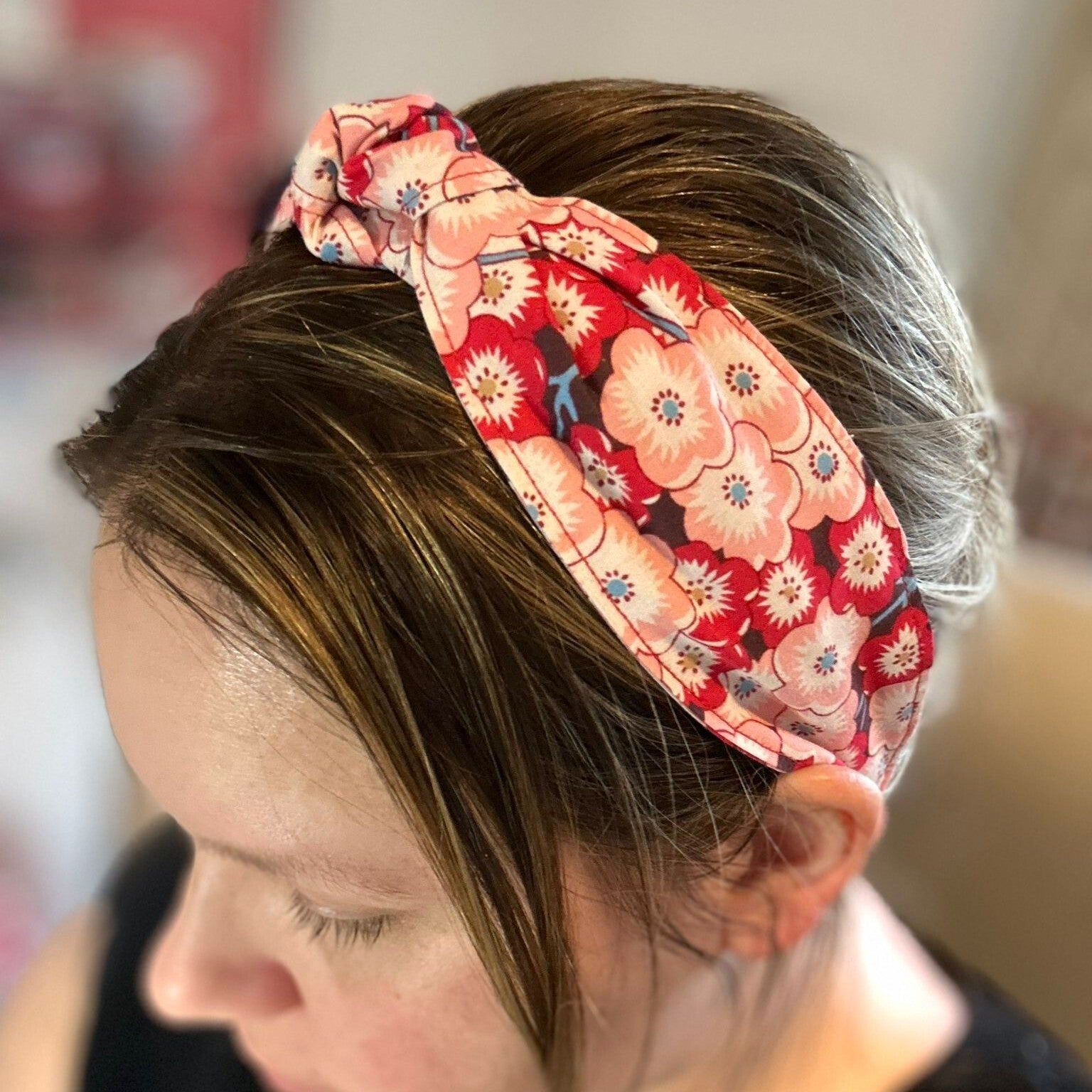 Voeg een vleugje boho romance toe aan je look met de Daisy Dusk haarband. Deze met de hand gestoffeerde knotted haarband is gemaakt van een luchtige stof met een subtiel bloemendessin in zachte tinten. De speelse knoop in het midden geeft je kapsel een nonchalante, zomerse touch. Perfect om te dragen bij beach waves, een messy bun of losse lokken tijdens lange zomeravonden en dromerige festivals. Combineer met gouden sieraden en flowy jurken voor de ultieme boho look.