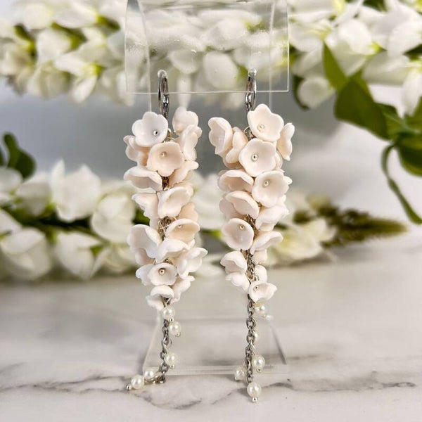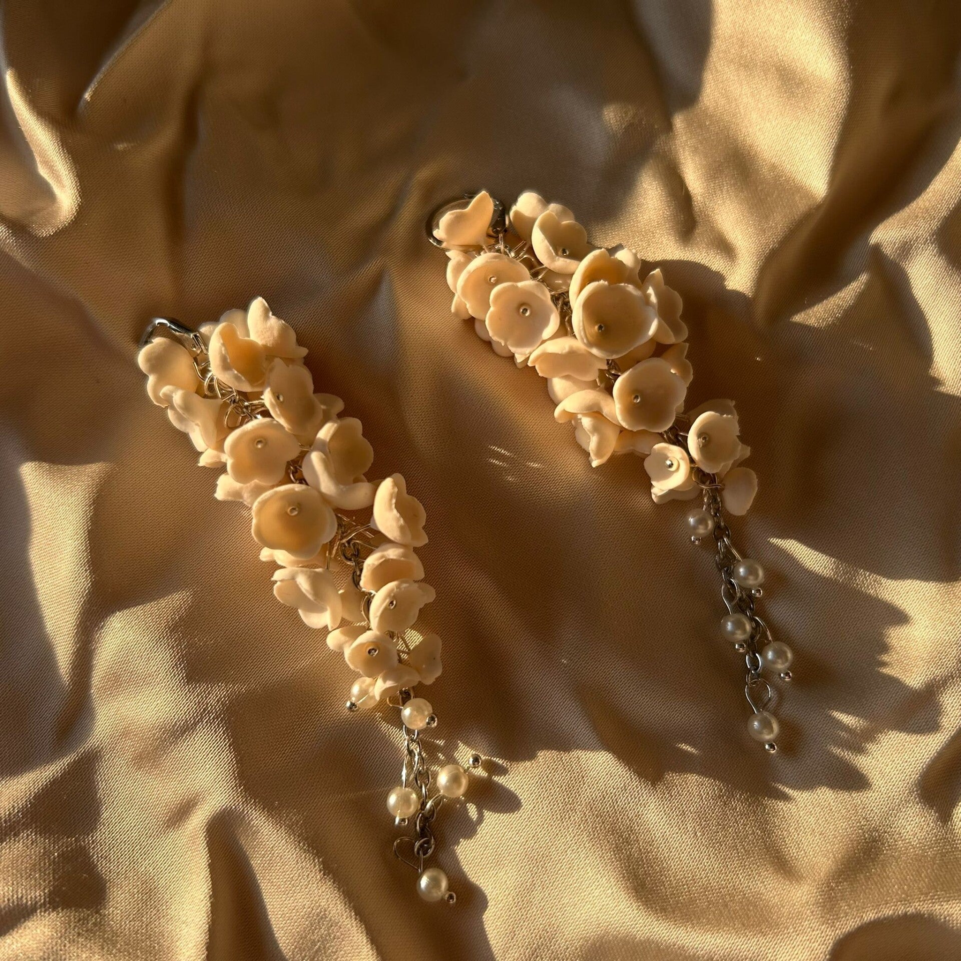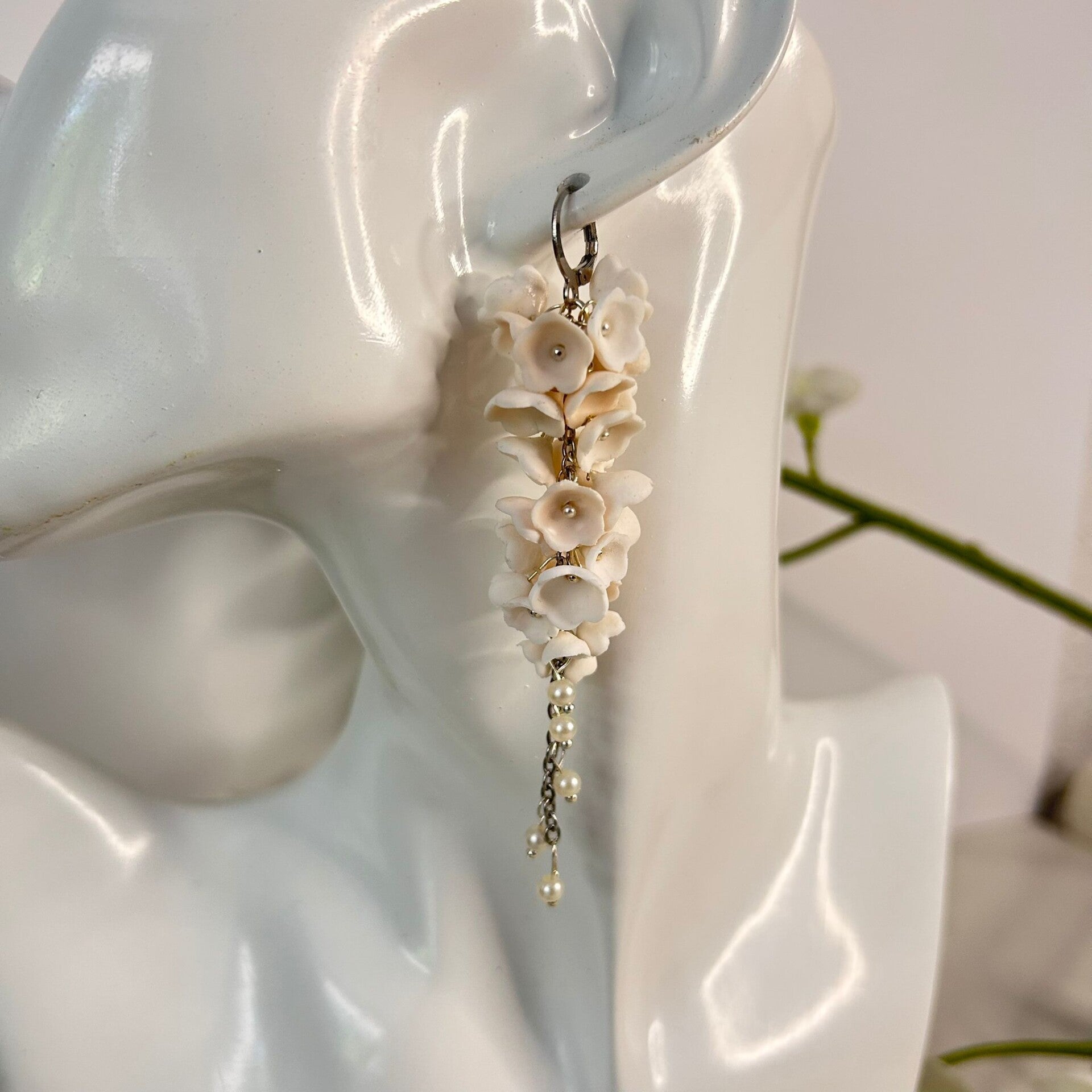 Zacht, puur en tijdloos — de witte Elysian Garden oorbel is een ode aan serene zomerdagen en zwoele avonden. Deze handgemaakte oorbel is gevormd van witte polymer clay bloemblaadjes, subtiel afgewerkt met stainless steel details. De lichte tinten vangen het zonlicht prachtig en maken van deze oorbel het perfecte accessoire voor boho bruiloften, stranddagen of een golden hour picknick.