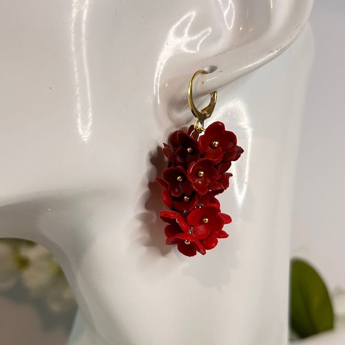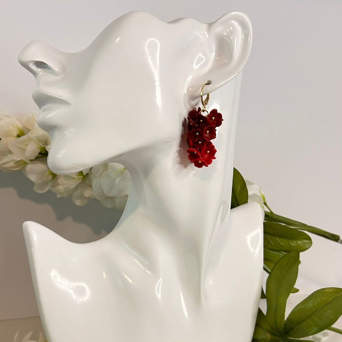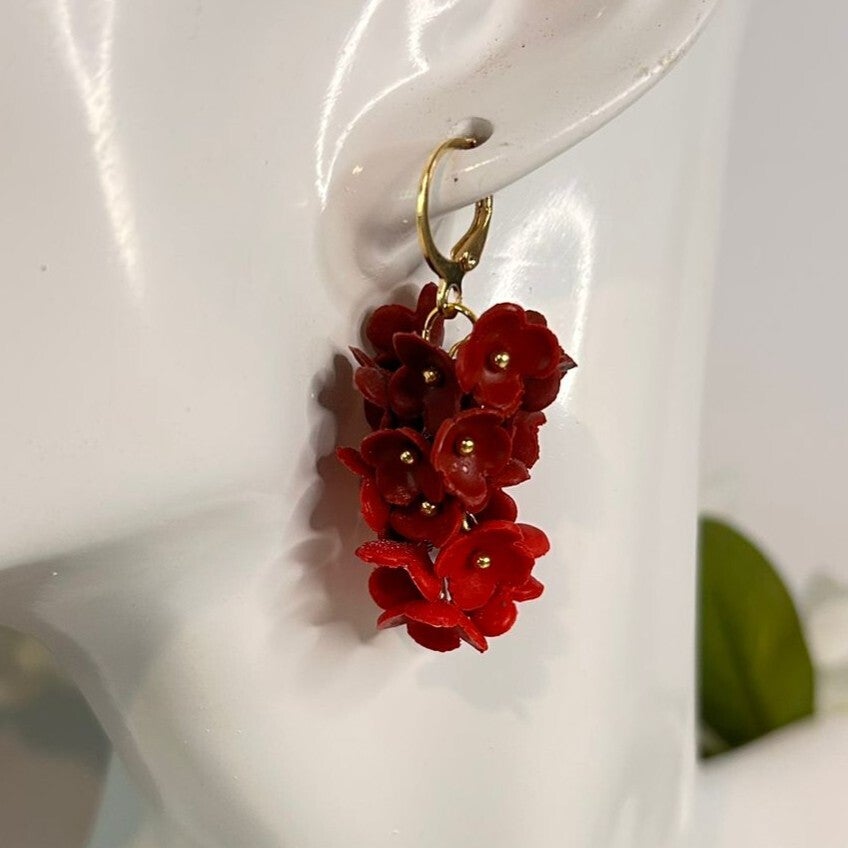 Wat een krachtige en romantische variant! De diepe bordeauxrode roosjes gecombineerd met felrode bloemetjes geven deze oorbel een dramatische, elegante uitstraling, sensueel, stijlvol en perfect voor zowel avondlooks als herfst- of feestcollecties.