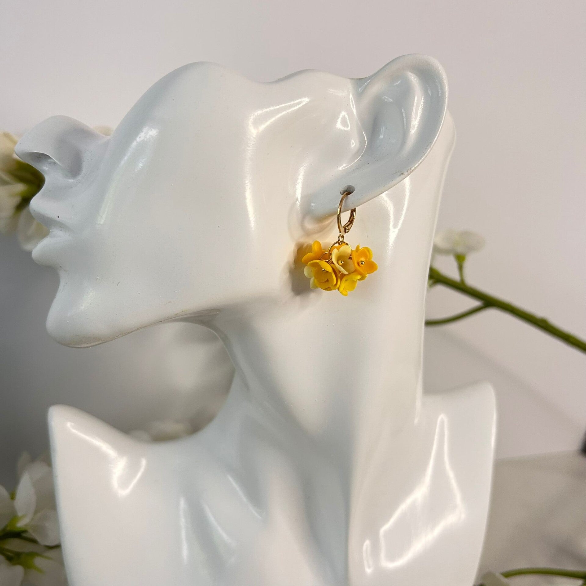 De bloemetjes zijn zorgvuldig met de hand gevormd uit polymer clay en hangen aan goudkleurige stainless steel oorringen.