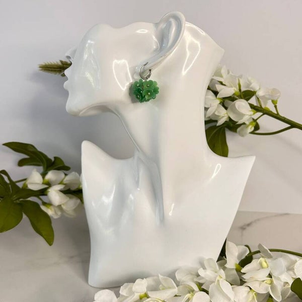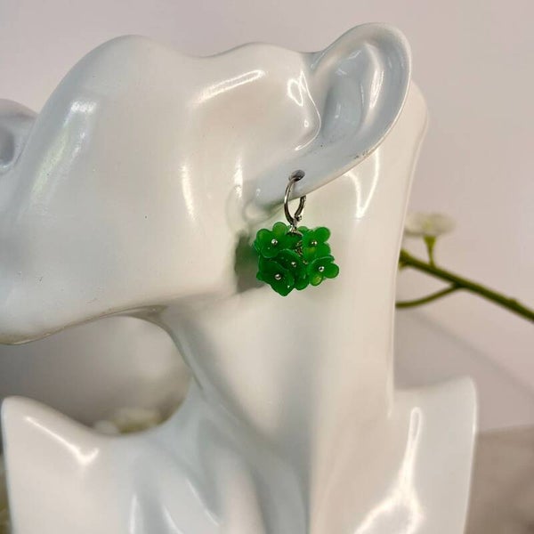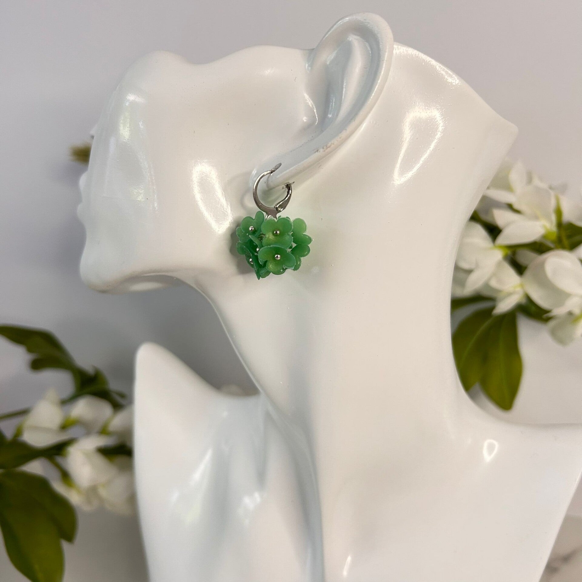 Klein van stuk, groots in uitstraling. De Emerald Charm is een speelse en elegante oorbel met fijne groene bloemetjes die met de hand zijn gevormd uit translucent polymer clay. De subtiele parelglans in het hart van elke bloem geeft deze oorbel een verfijnde touch.