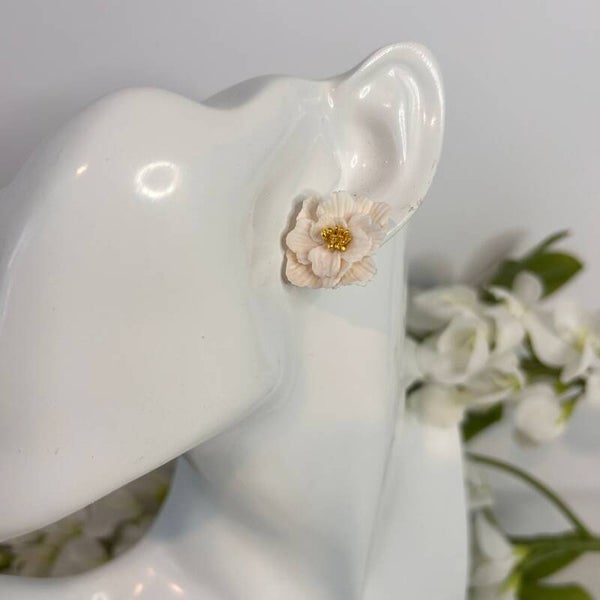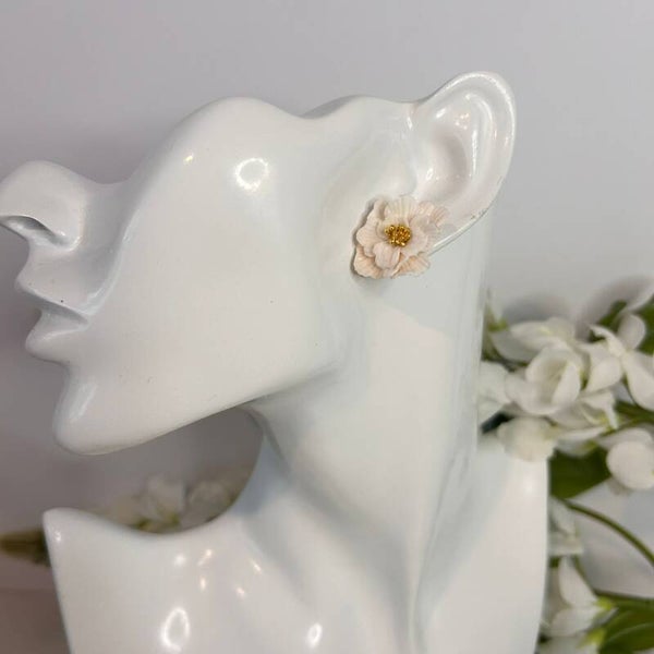 Voeg tijdloze elegantie toe aan je look met de Botanica stud in ivoor. Deze handgemaakte bloemenoorbellen zijn vervaardigd uit polymeer klei en afgewerkt met een stainless steel stampertje in een warme goudkleur. of een heldere zilveren variant. Dankzij het stainless steel stekertje zijn ze nikkelvrij en huidvriendelijk, ideaal voor gevoelige oren.