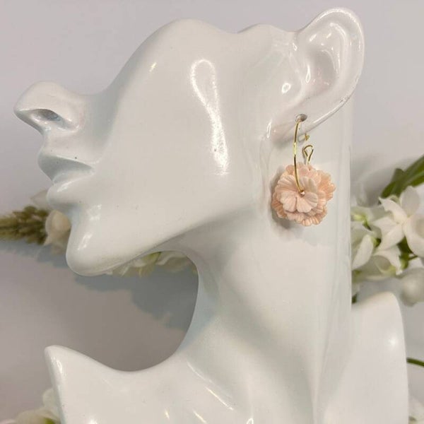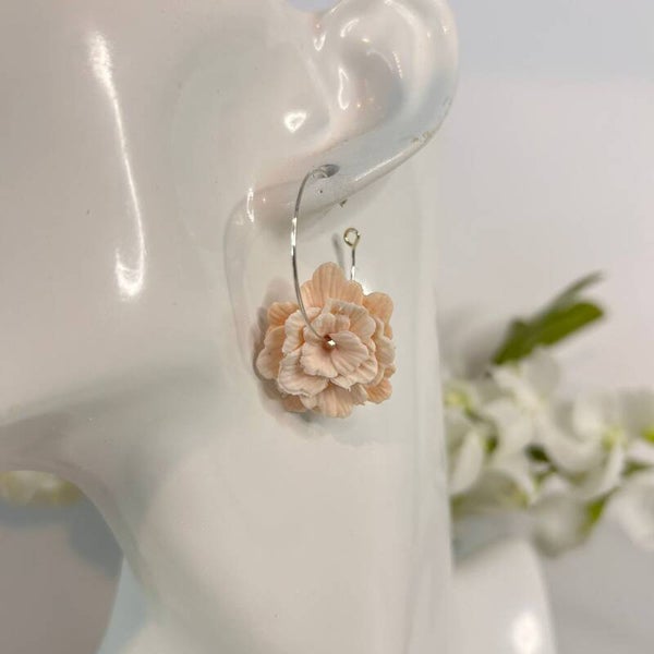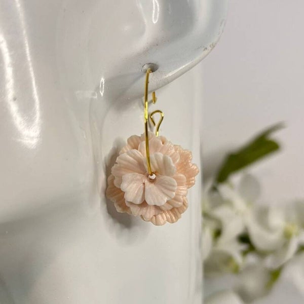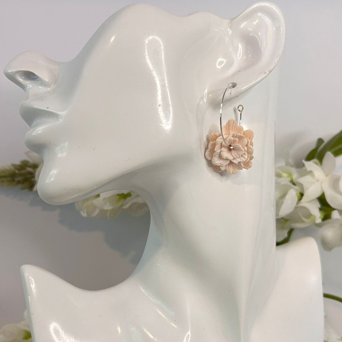 Breng een vleugje natuurlijke elegantie aan je look met deze handgemaakte ivoor bloemoorbellen aan gouden of zilveren stainless steel oorring. Elke oorbel is met zorg gevormd uit hoogwaardige polymeer klei en gedetailleerd met fijne bloembladen voor een realistische, romantische uitstraling.