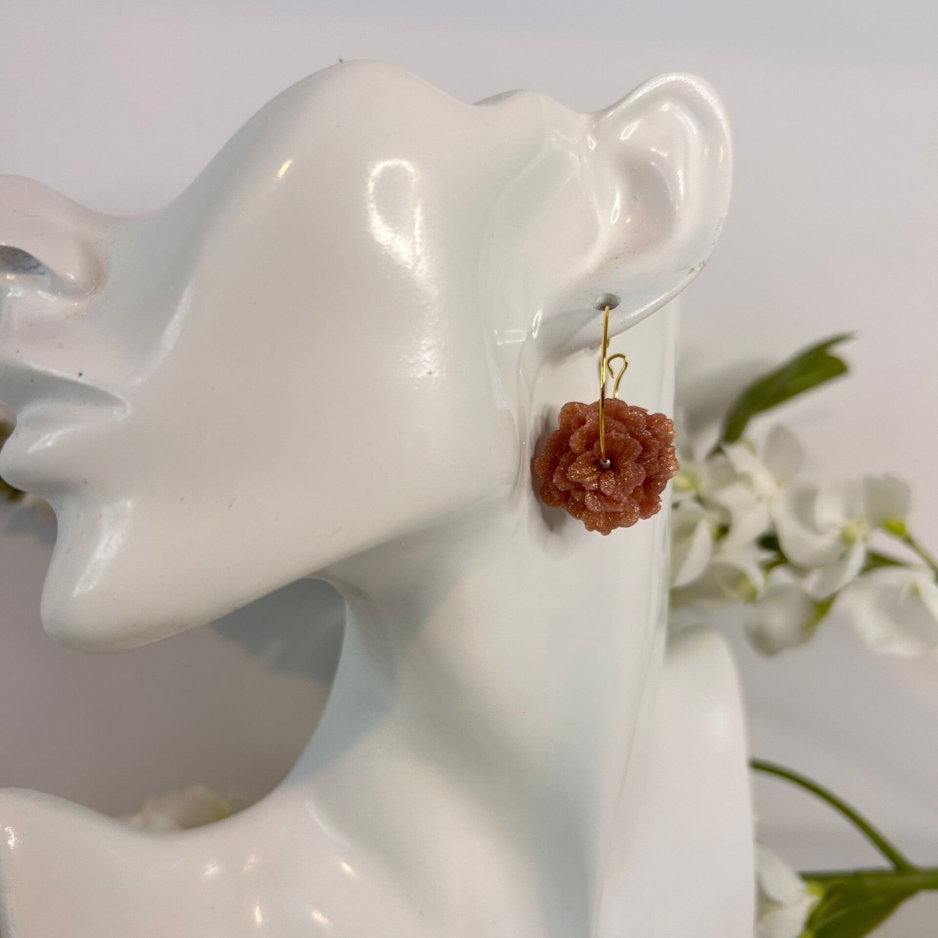 Voeg een vleugje glamour toe aan je look met deze sprankelende bloemoorbellen uit de Botanica hoops collectie. De bloemen zijn met de hand gevormd uit polymeer klei en voorzien van een subtiele roségouden glans, waardoor ze bij elke beweging het licht vangen. De warme tint en de zachte glinstering maken deze oorbellen perfect voor zowel feestelijke gelegenheden als een chique dagelijkse look.