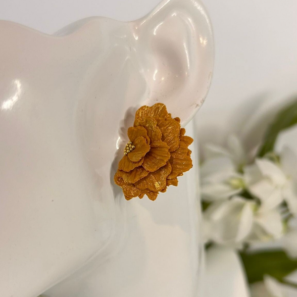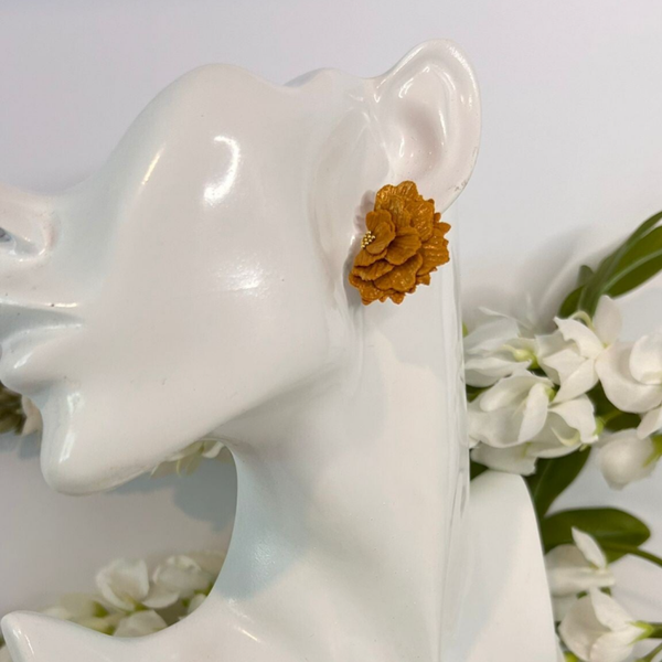 Boho botanica half bloom stud – Okergeel met glans