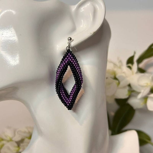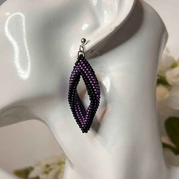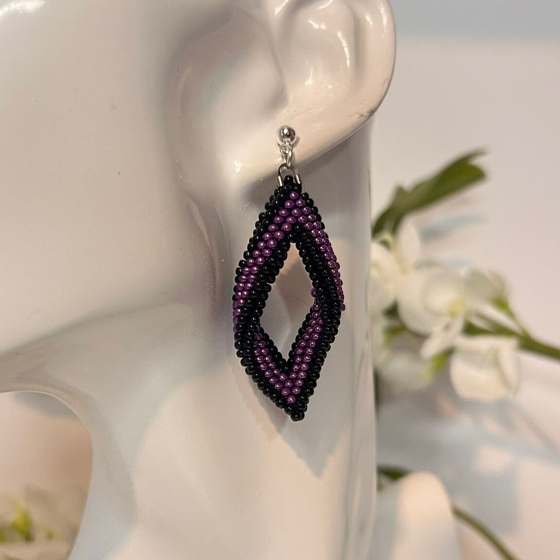 Een vleug mysterie, een sprankel van paars en een randje glamour. De Violet Eclipse Beaded Oorbellen vangen het licht op precies de juiste manier en geven elke outfit een luxueuze, feestelijke touch. Handgemaakt met fijne Toho seed beads in diep paars en zwart, afgewerkt met een elegante RVS stud. Deze oorbellen zijn licht, comfortabel en brengen precies die boho sparkle die je zoekt voor een avond vol dans en licht.