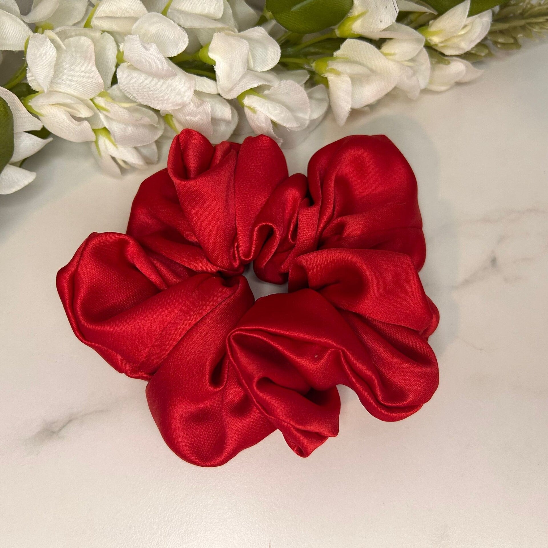 De Scarlet medium scrunchie is voor wie durft. Deze rode satijnen scrunchie van ca. 10 cm in diameter voegt direct flair en zelfvertrouwen toe aan je look. Het medium formaat is ideaal voor een stevige staart, bun of half-up kapsel, terwijl het gladde satijn je haar beschermt tegen knikken, pluis en breuk. Combineer met een little black dress voor instant glamour of draag ‘m casual voor een stijlvolle twist.