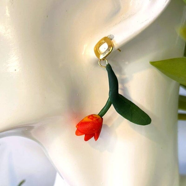 Zoek je originele bloemen oorbellen die je moeiteloos combineert met warme tinten zoals beige, terracotta en goud, dan zijn deze tulpen oorbellen een perfecte match.