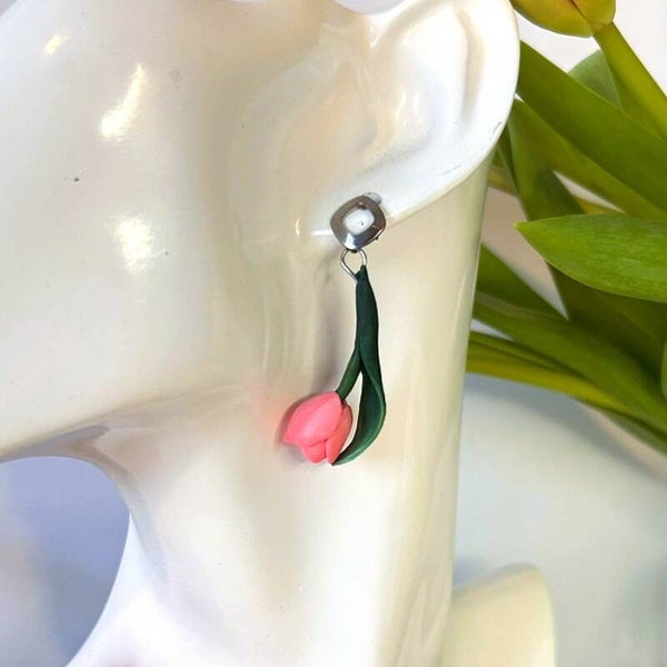 De rose tulip drop oorbellen uit de When tulips bloom collectie brengen een zachte, moderne uitstraling in je look. De roze tulip hanger vormt een verfijnd contrast met het groene blad en geeft een subtiele kleuraccent dat perfect past bij minimal outfits en rustige tinten.